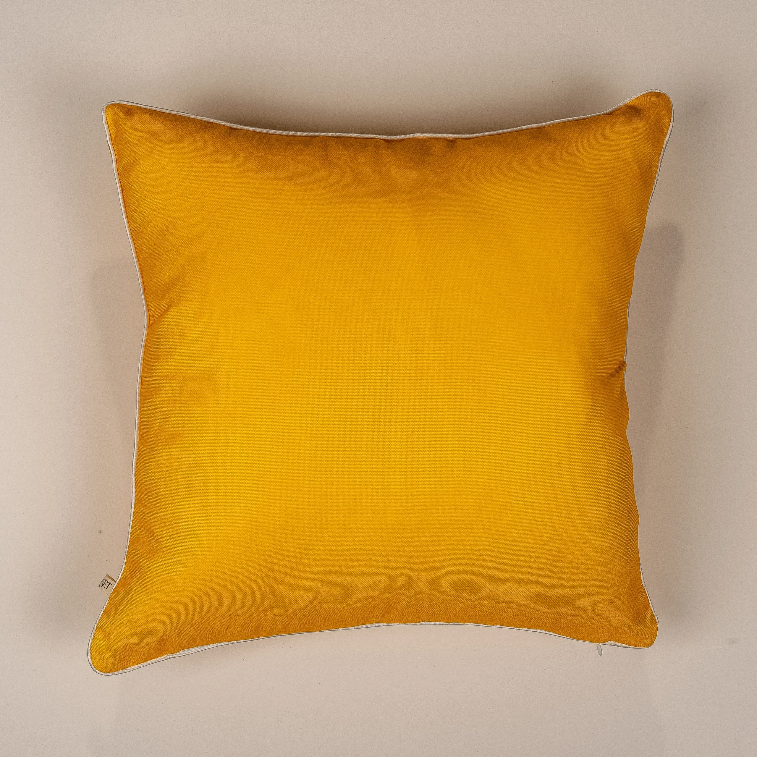 Sarı renkli kırlent kılıfı. Alt kısmında fermuar detayı bulunur.
